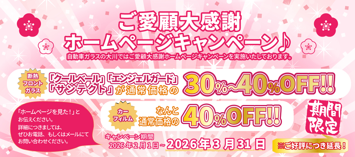 Service 01フロントガラス交換・リア、サイドガラス交換