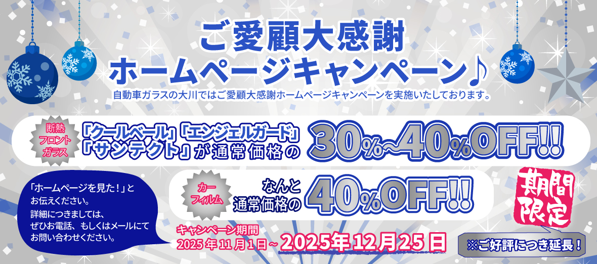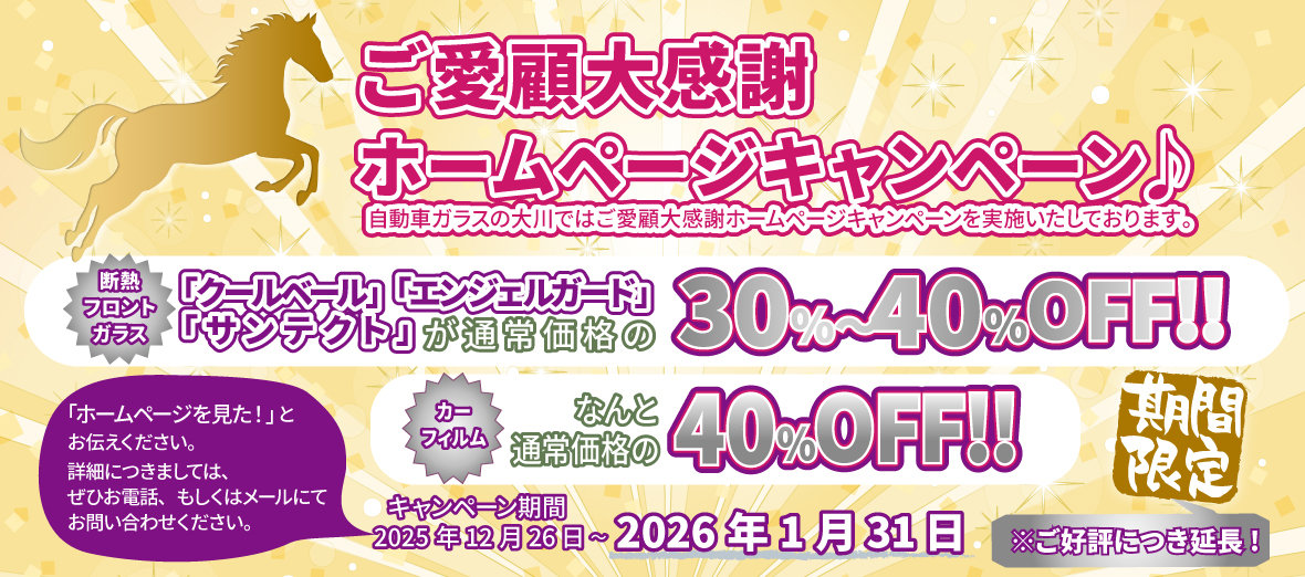 Service 01フロントガラス交換・リア、サイドガラス交換
